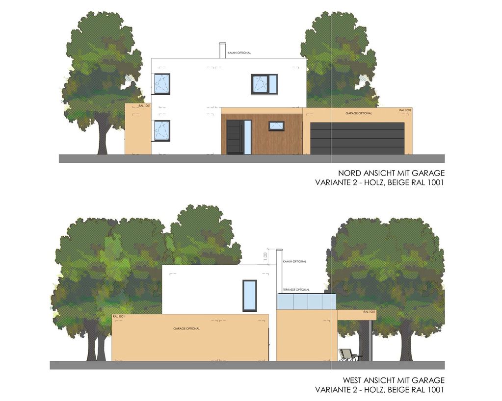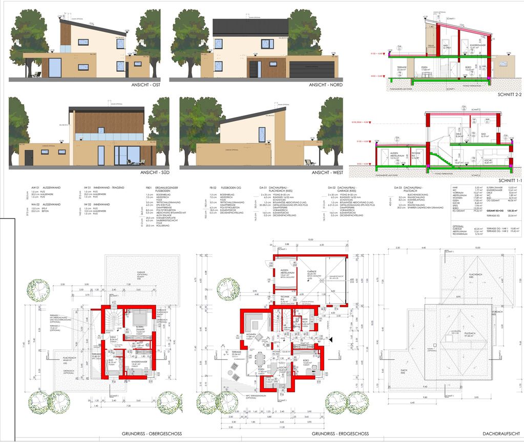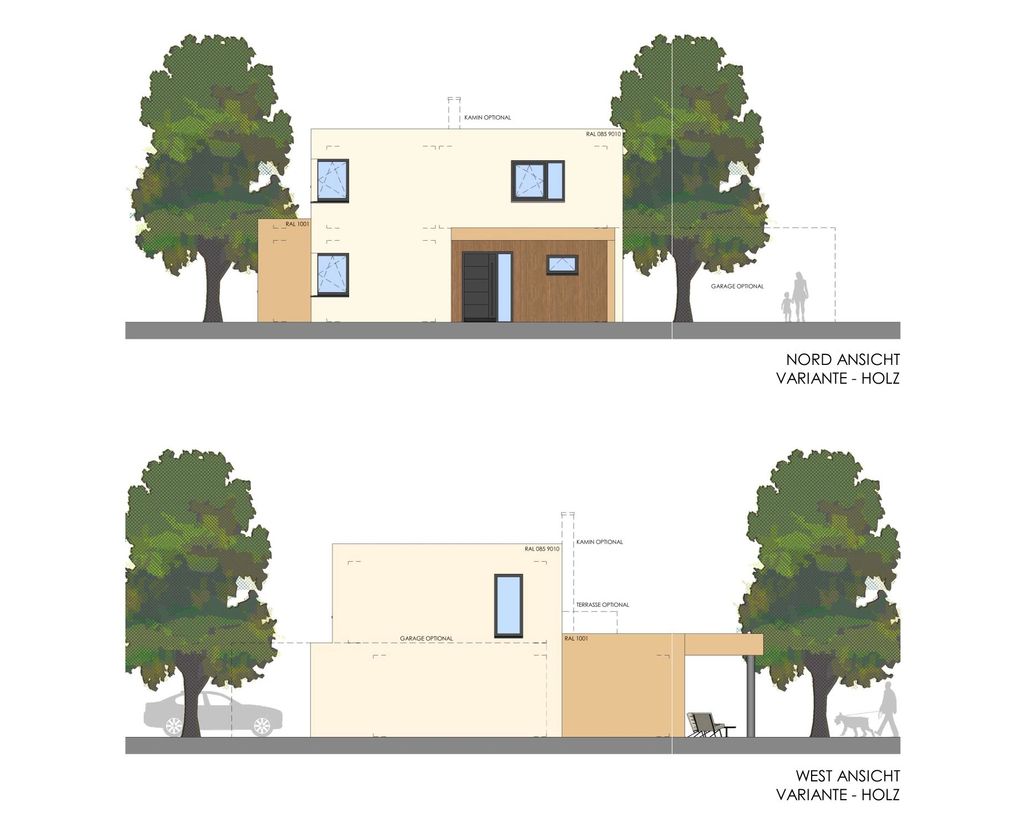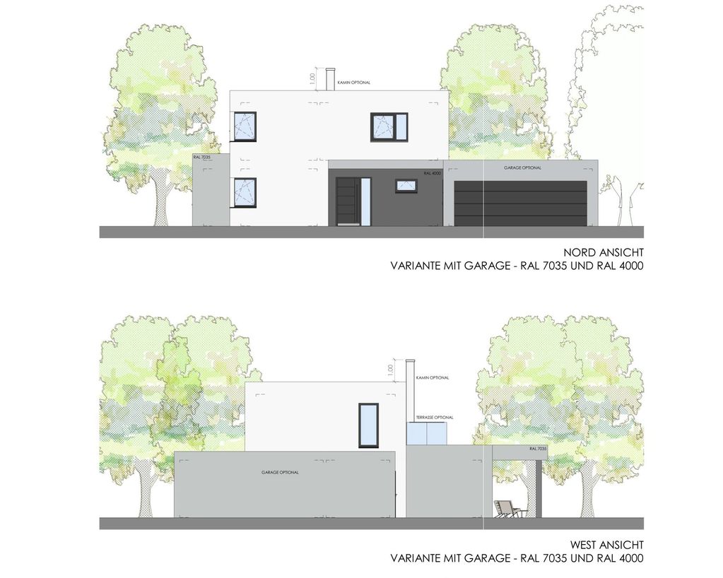 Entwicklung eines Einreichplanes für ein Modulhaus mit verschiedenen Dachformen und Grundrissen je nach Familiengrösse